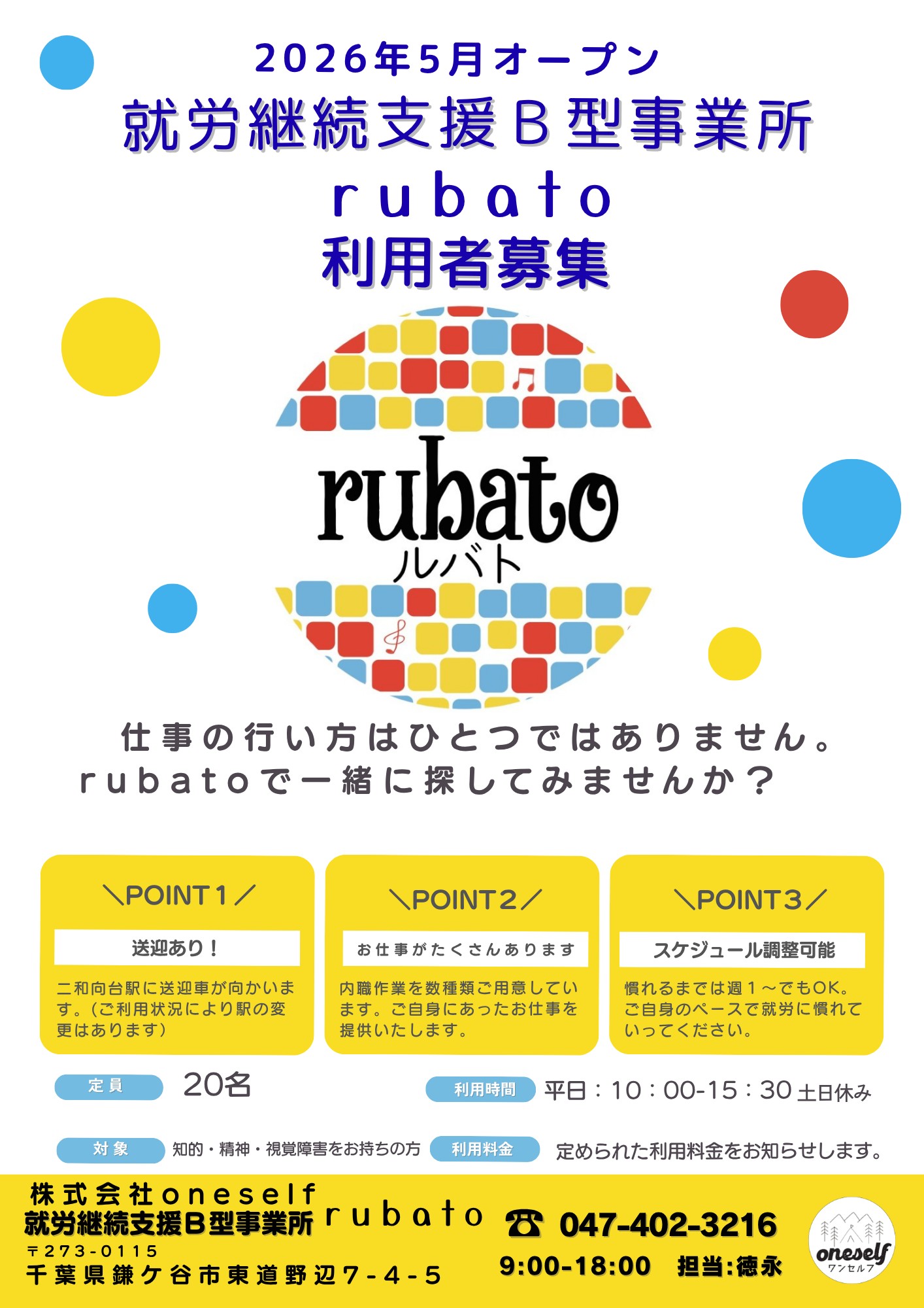令和8年5月1日に今までは船橋市で事業を展開しておりましたが、近隣市町村の方からご要望が数多く集まりましたので、鎌ケ谷市で初めて事業所を開所いたしました。