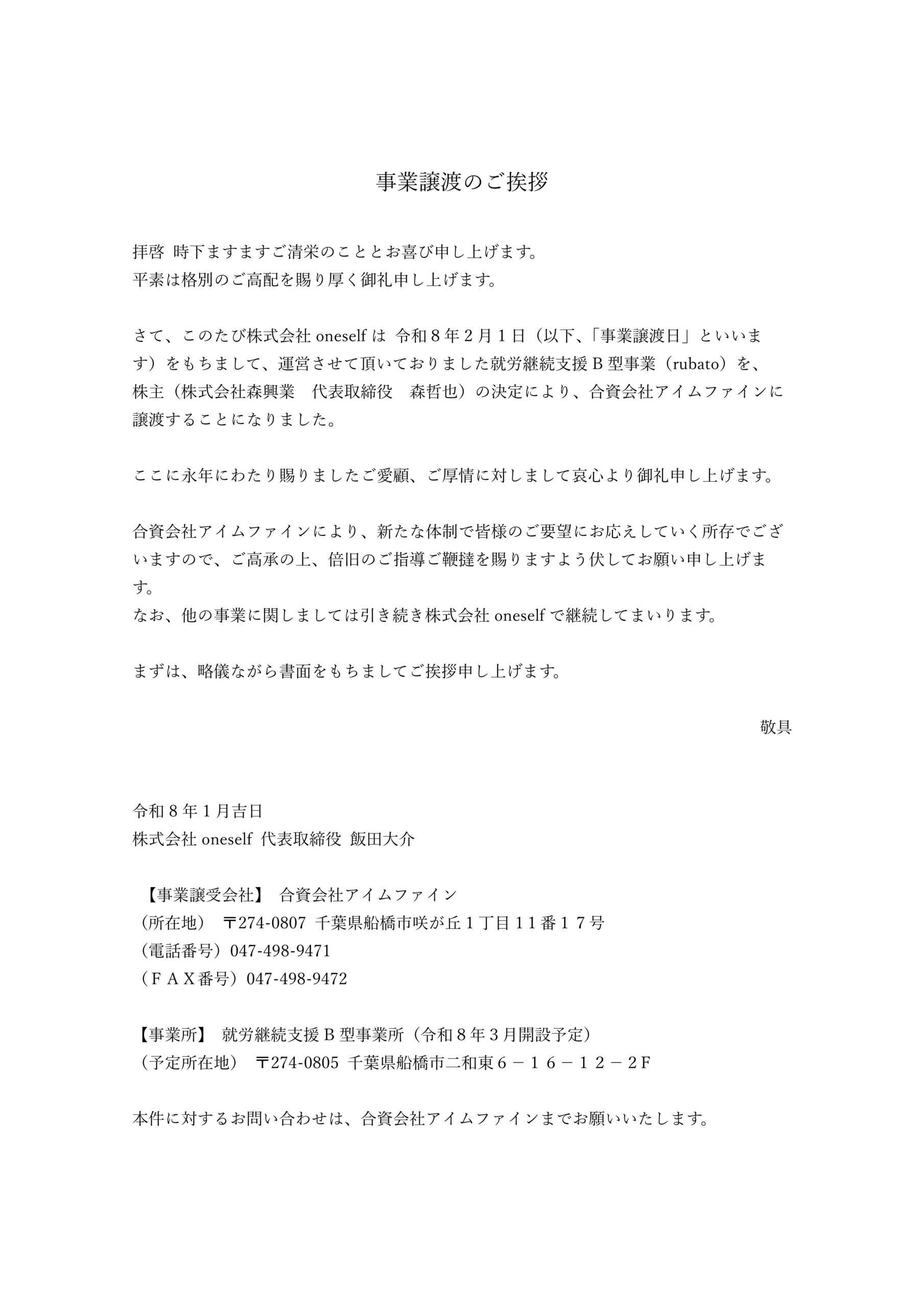 これからも株式会社oneselfを何卒よろしくお願いいたします。